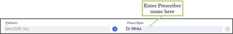 When a patient is selected, their default prescriber displays in Prescriber.