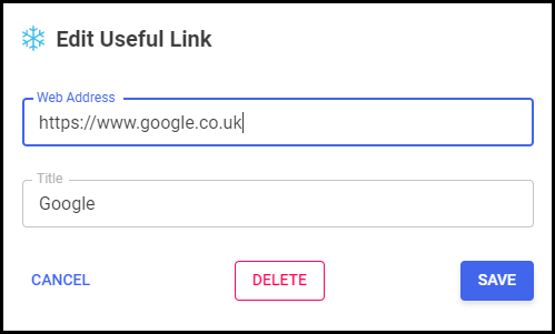 To delete a Useful Link, from the Useful Links tile on the dashboard: