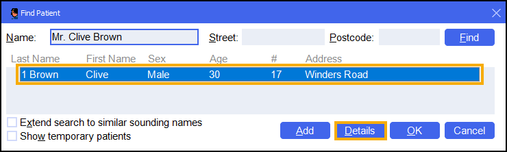 Search for the patient and select Details