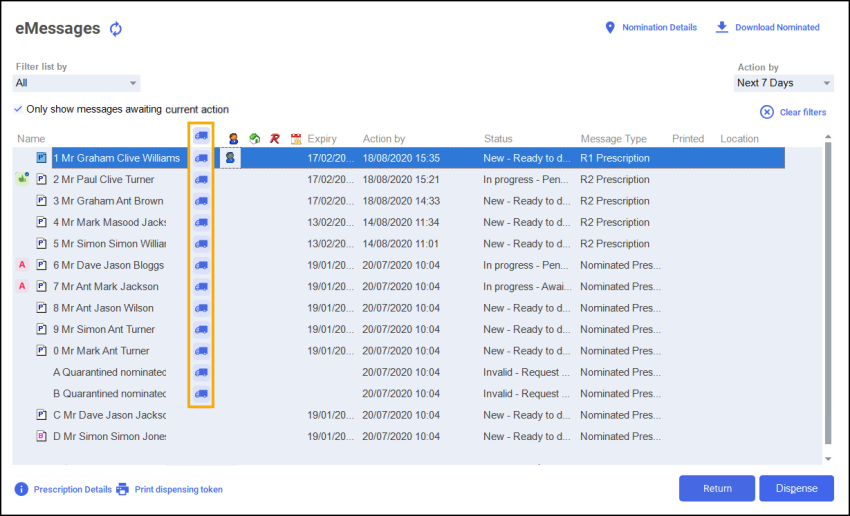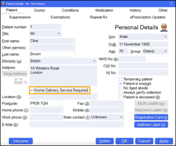 You can easily identify a patient that requires a delivery service within Pharmacy Manager.