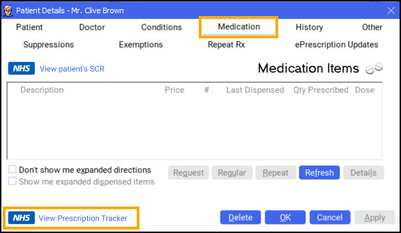 .Note - The patient's NHS number must be recorded to enable the View Prescription Tracker button.