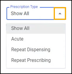 To filter prescriptions by prescription type: