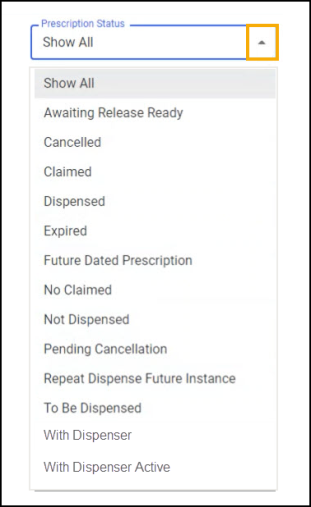 Select the Prescription Status drop-down.
