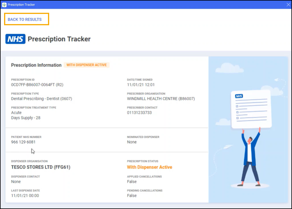 You can now access the NHS Prescription Tracker within Patient Details, helping you quickly locate and view all prescriptions for the patient.