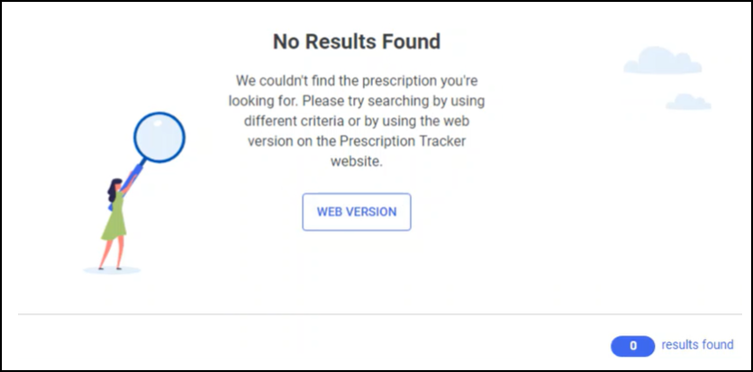 If no prescription is available, or the service is unavailable, the below notifications display:
