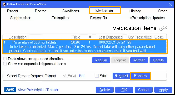 Previewing and adding comments to a repeat prescription request
