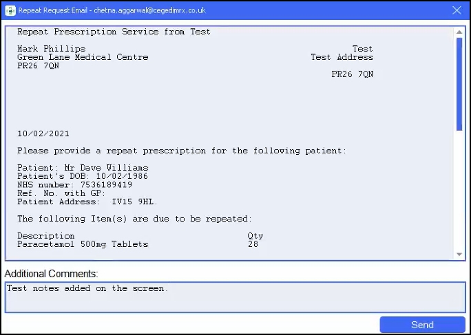Preview and add comments - You can now preview the email/ letter, and add additional comments before sending it to the GP.