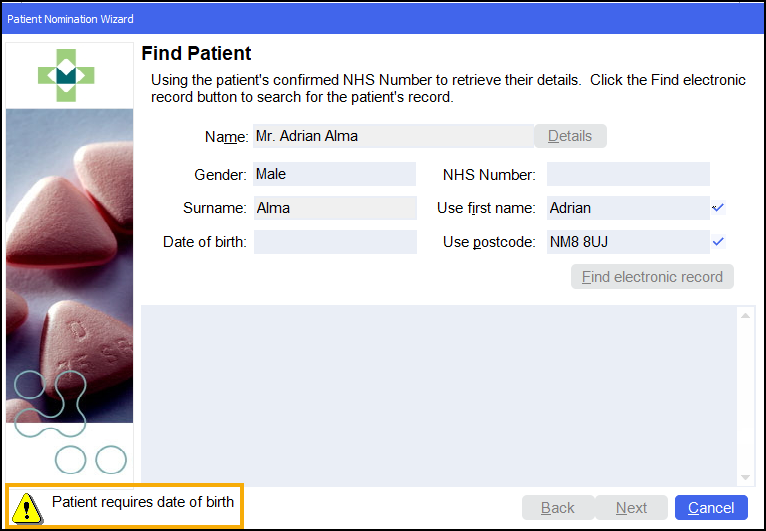 You can now update a patient’s nomination details without their NHS number entered in Patient Details. This allows you to nominate new patients as they are added to the system. From Patient Details: