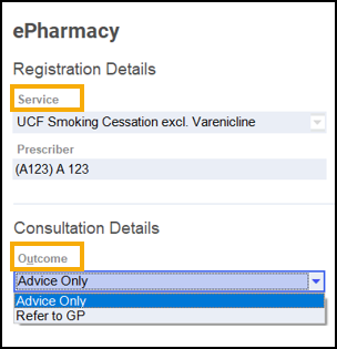 When recording any UCF services, you will be limited in the Outcomes that you can select: