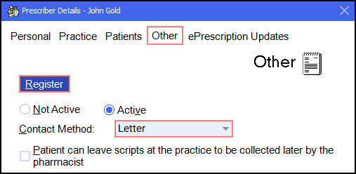 The Prescriber Details screen displays. Select the Other tab: