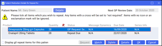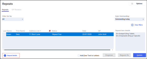 Select the patient and select Repeat Details