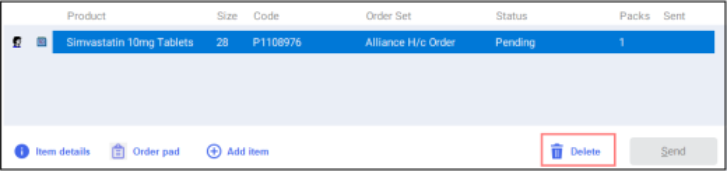 Select the required item and select Delete