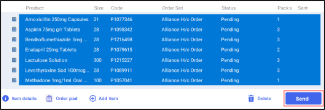 After you have checked through your orders, you must send the order through to the wholesaler. To send an order: