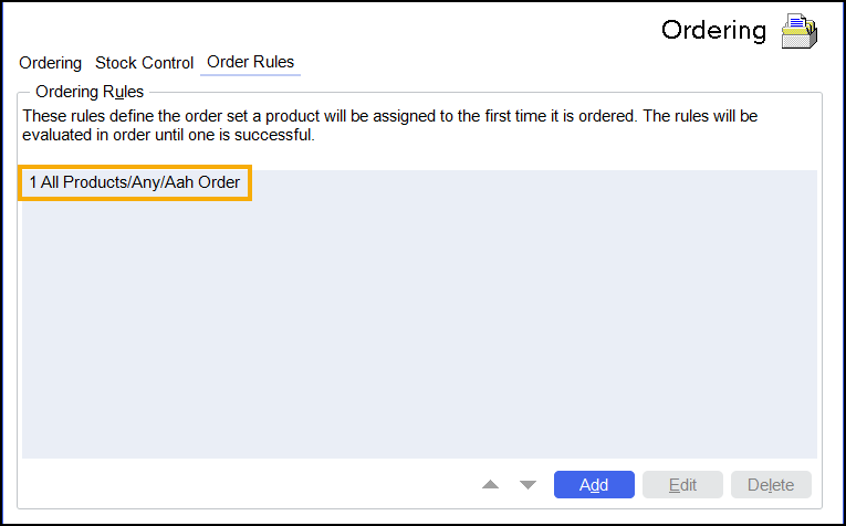 The new order rule displays on the Order Rules tab, from here you can reorder, edit or delete the order rule: