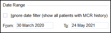 Set the Date Range as required or place a tick next to Ignore date filter (show all patient's with MCR history):
