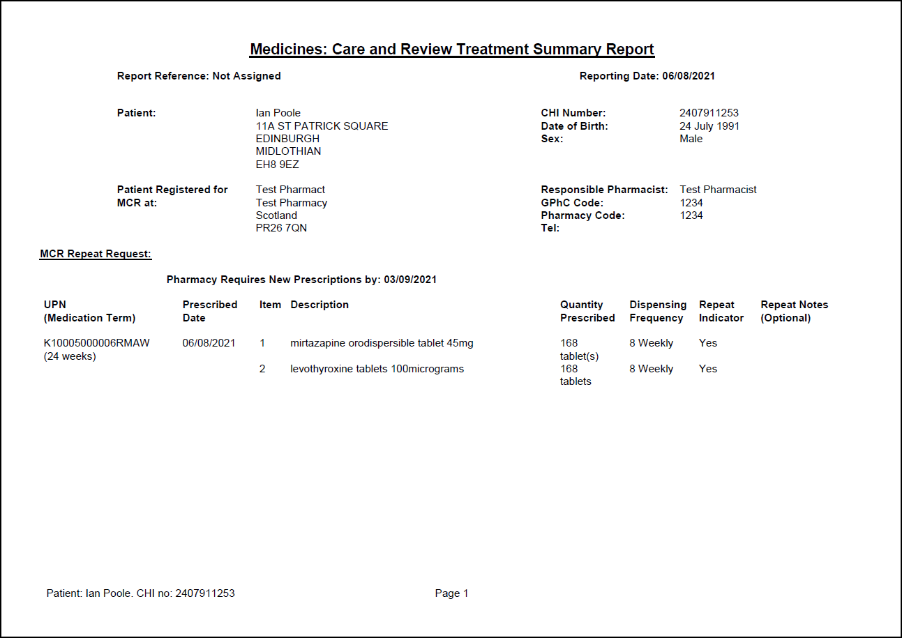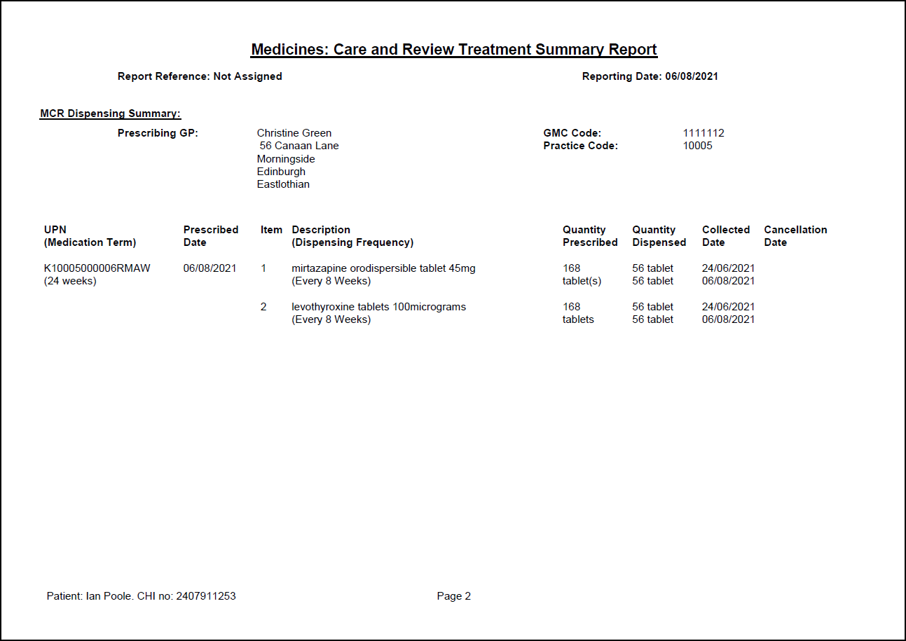 Within Pharmacy Manager you can run an MCR Treatment Summary Report for patient(s) that are in the process or have finished a course of treatment. This displays all dispensing and support activity.