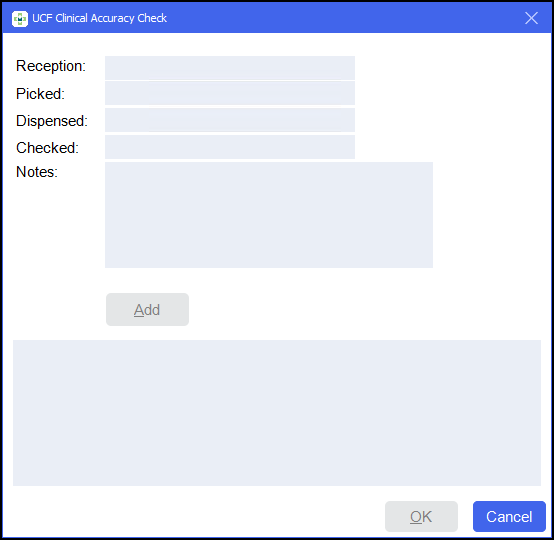 to record the clinical and accuracy checks, or select Cancel