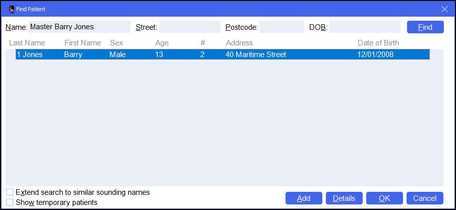 The Find Patient screen displays. Select the appropriate patient and select OK