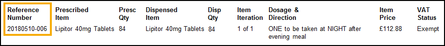 If you have opted for a Private Prescription Register, Pharmacy Manager applies a reference number for each item you dispense.