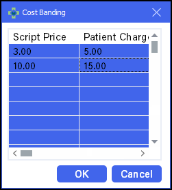 The Cost Banding screen displays