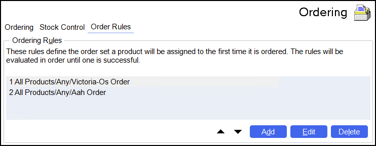 The Order Rules tab is where you maintain the list of what products you order from which supplier and in the case of a product not being available from one, which supplier is second choice and so on.