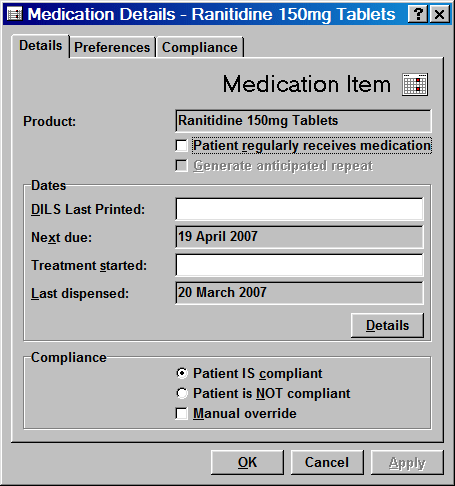 This screen shows you further information about the particular medication as used by that patient.
