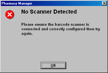 The scanner may be attached to a different USB port to the one in the Pharmacy Manager settings.