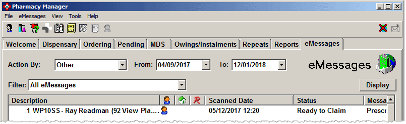 The status of the prescription is updated to Claim sent on the eMessages tab.