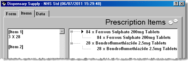 If multiple prescriptions have been selected, at the point they are to be endorsed, the system retains them chained as one virtual prescription/dispensary supply. However, as you need to print endorsements, the items need separating back to their original prescription forms.