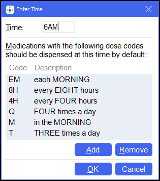 Setting Up Default Times and Dose Codes
