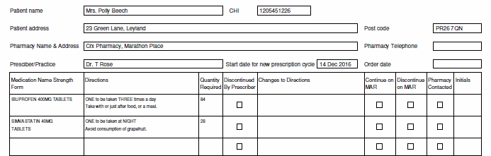 Depending on the number of items printed, there will usually be empty rows to allow GPs providing house calls to append any newly prescribed medication to the list.