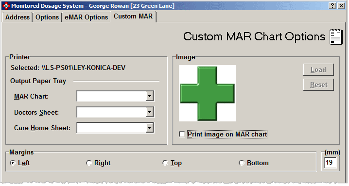 One of the main benefits of this additional format is that the Custom option can handle more than one paper source - and consequently multiple paper types/colours. For example, your could have white paper in one paper tray for the MAR Charts. You could have yellow paper for the carehome's record and a third colour for the doctor's order sheet.