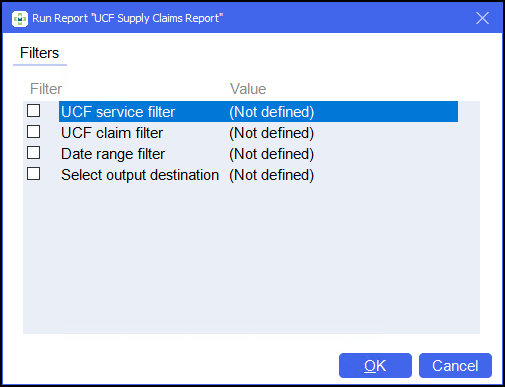 From the list of available reports, select UCF Supply Claims Report and select Run: