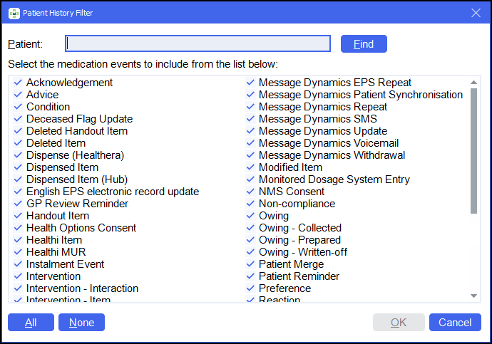 You can easily run a report to display a patient's medication history in Pharmacy Manager with chosen criteria. To run this report: