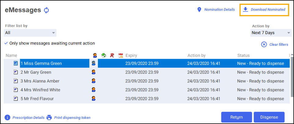 - All nominated prescriptions download from the NHS Spine.