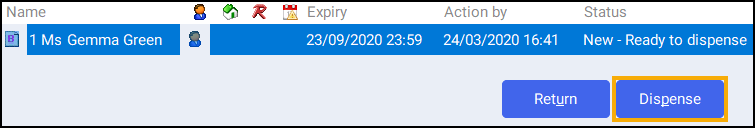 To dispense an electronic prescription, from the Pharmacy Manager Dashboard: