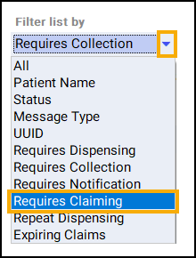 . The eMessages screen displays. - From Filter list by, select the Requires Claiming filter: