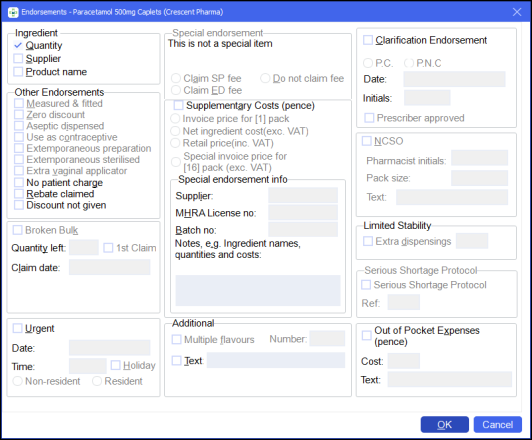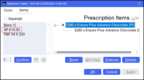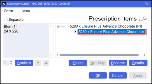 2. From the Dispensary Supply screen, select the prescription item you wish to claim the out of pocket expense for and select Endorse .
