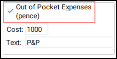 • Text - Enter any additional text to explain the out of pocket expense, for example, postage and packaging.