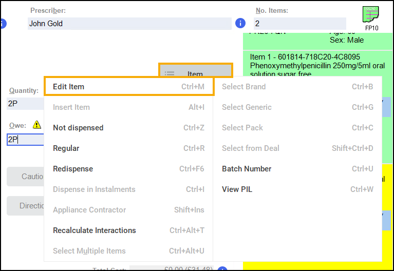 Editing an additional item on a Multi Item Prescription
