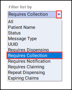 . The eMessages screen displays. - Select the Requires Collection filter: