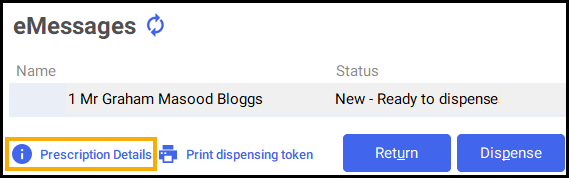 1. From the eMessages screen, select a prescription that is Ready to Dispense.