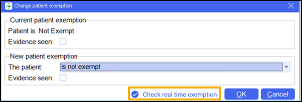 1. The patient’s exemption status displays.