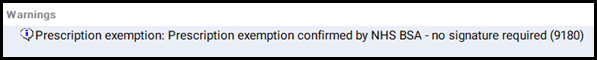 1. Select the Patient exemption text in Warnings: