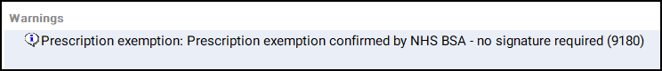 - Select the Patient exemption text in Warnings: