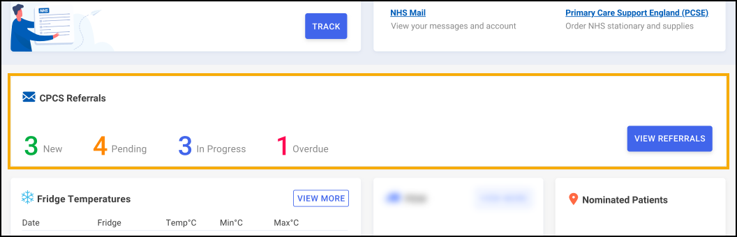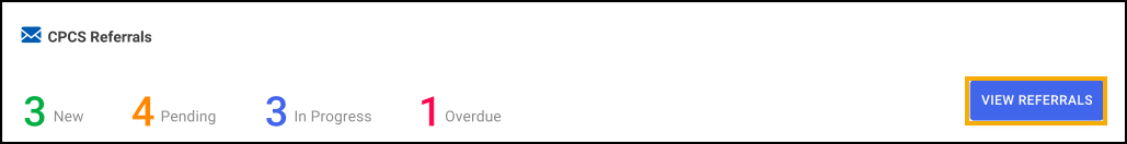 A CPCS Referrals tile displays an at a glance overview of the number of referrals and their current status: