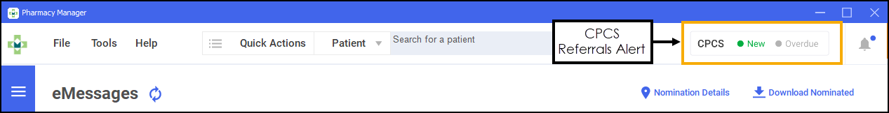 Select the CPCS Referrals alert on the Pharmacy Manager toolbar: