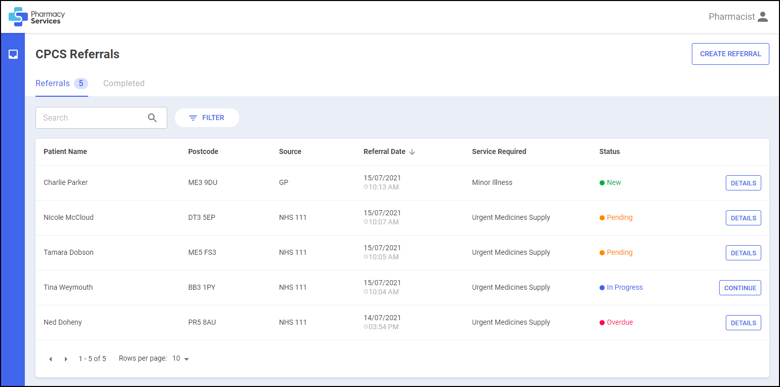 You can view your Community Pharmacy Consultation Service (CPCS) referrals on the Pharmacy Manager Dashboard in two ways: