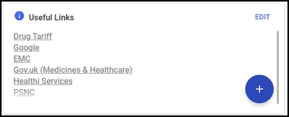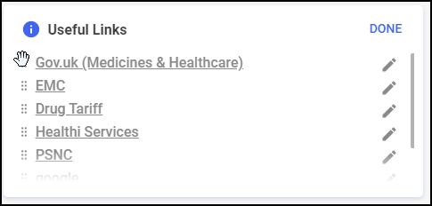 The Useful Links tile on your Pharmacy Manager dashboard allows you quick and seamless access to websites you, as a pharmacy, use or might find useful.