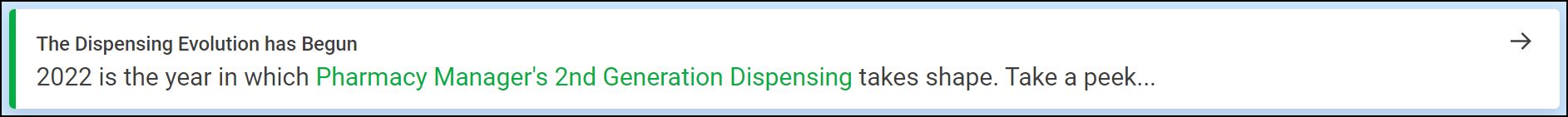 What's New - The What's New tile displays a brief description of new features in Pharmacy Manager. Select the tile to open the What's New? help topic for more details.